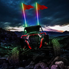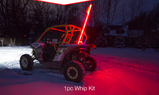 The best LED whip kit on the market for your Side by side or quad! Featuring 315 LEDs for a total of 28 watts of blinding power, these are sure to get you seen. The quick connect base makes transporting easy and gets you out on the trails. The second-gen spring loaded base ensures durability on even the toughest terrain. Controlled with our UTV Life Smartphone App with millions of colors, Music Sync, Speed Sync, and so much more. The Smart Brake feature even turns the whips red automatically when the brake is applied. Available in a 1 or 2 piece whip kit.