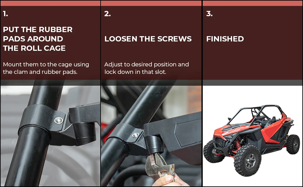 6. The installation is simple, just tighten the screws, and the installation accessories are included in the package (metal clamp is suitable for 2"roll cage)