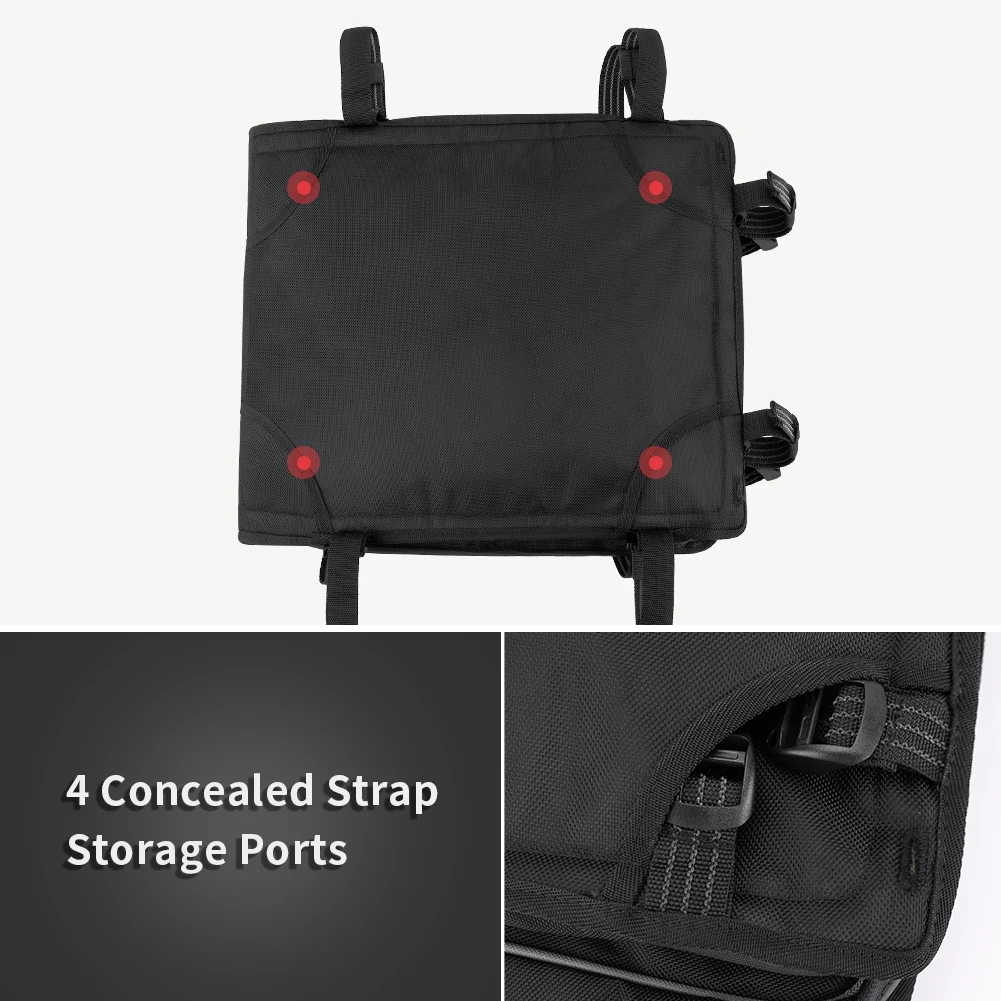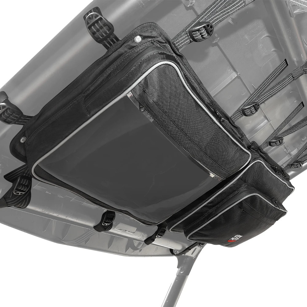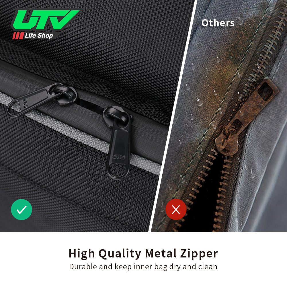 UTV roof bag, suitable for equipment and use in Polaris RZR XP PRO The capacity of the roof bag is very large, the transparent PVC bag can easily know the contents inside, and the fabric and all zippers are waterproof zippers; The roof bag is fixedly installed on the UTV roof frame with multiple rubber anti-skid webbing; When folding, the storage port on the back of the car bag can store the webbing, and the handle in the middle of the car bag can be easily carried, making this tail bag very convenient to use.